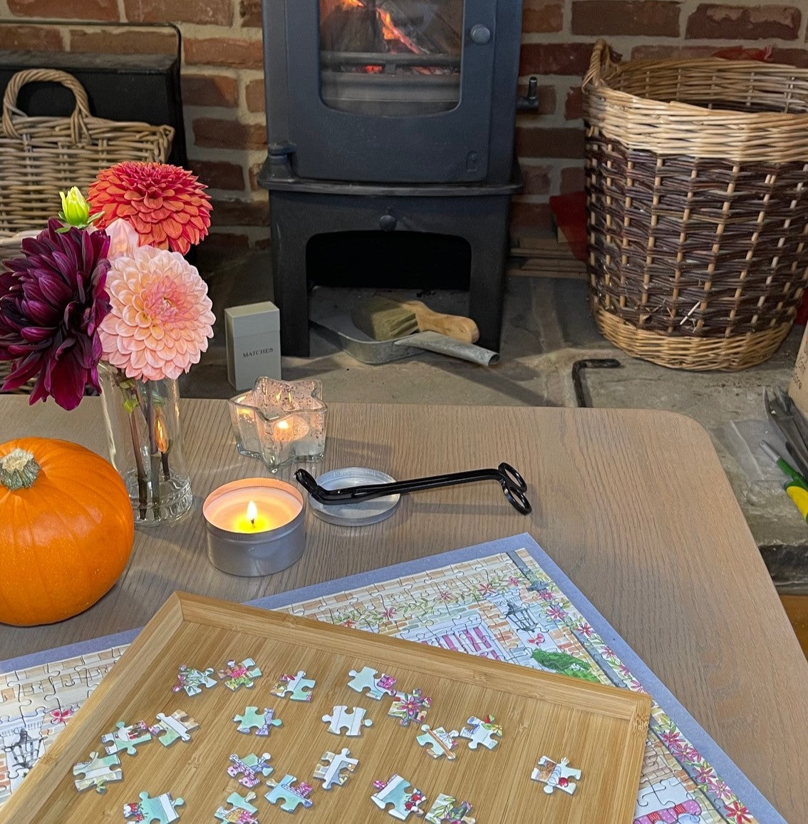 The idea for Bloom Puzzles came from my Christmas tradition of taking time out during the hectic holiday period with a jigsaw, a cup (or glass!) of something whilst savouring the scent of a seasonal candle and listening to some festive music.